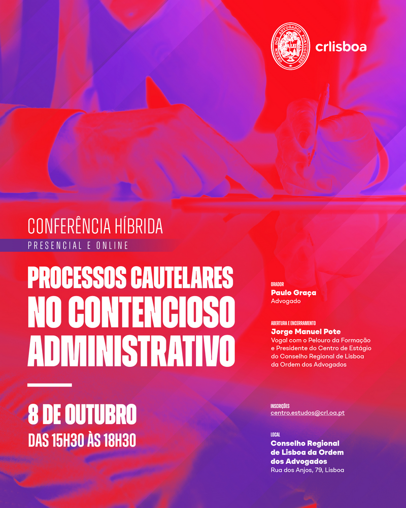 Esta conferência é gratuita  e destina-se  a Advogados e Advogados Estagiários.