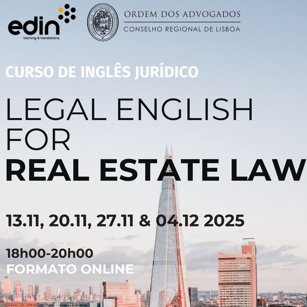 O Conselho Regional de Lisboa e a Edin Training & Translations promovem a segunda edição do curso de formação de Inglês Jurídico Legal English for Real Estate Law, em formato online, dedicado ao vocabulário do direito imobiliário.