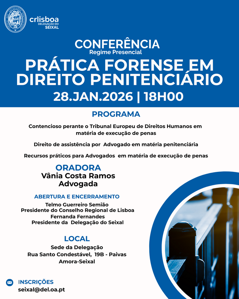 Advogados e Advogados Estagiários : Entrada gratuita sujeita a inscrição prévia