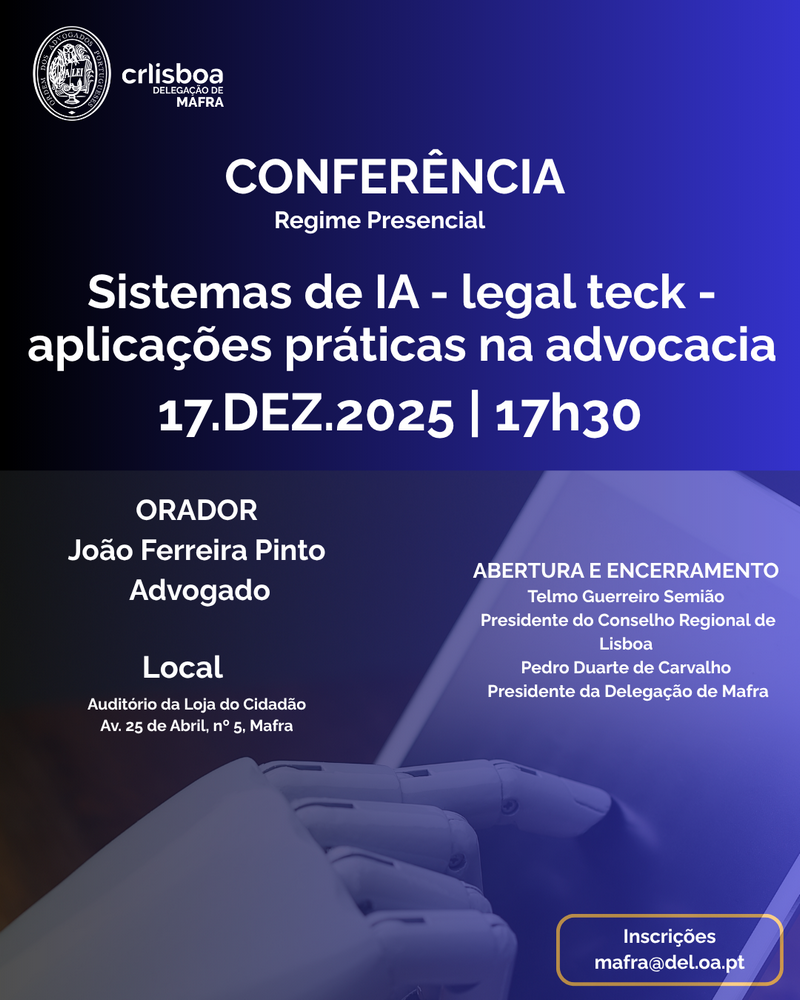 Advogados e Advogados Estagiários : Entrada gratuita sujeita a inscrição prévia