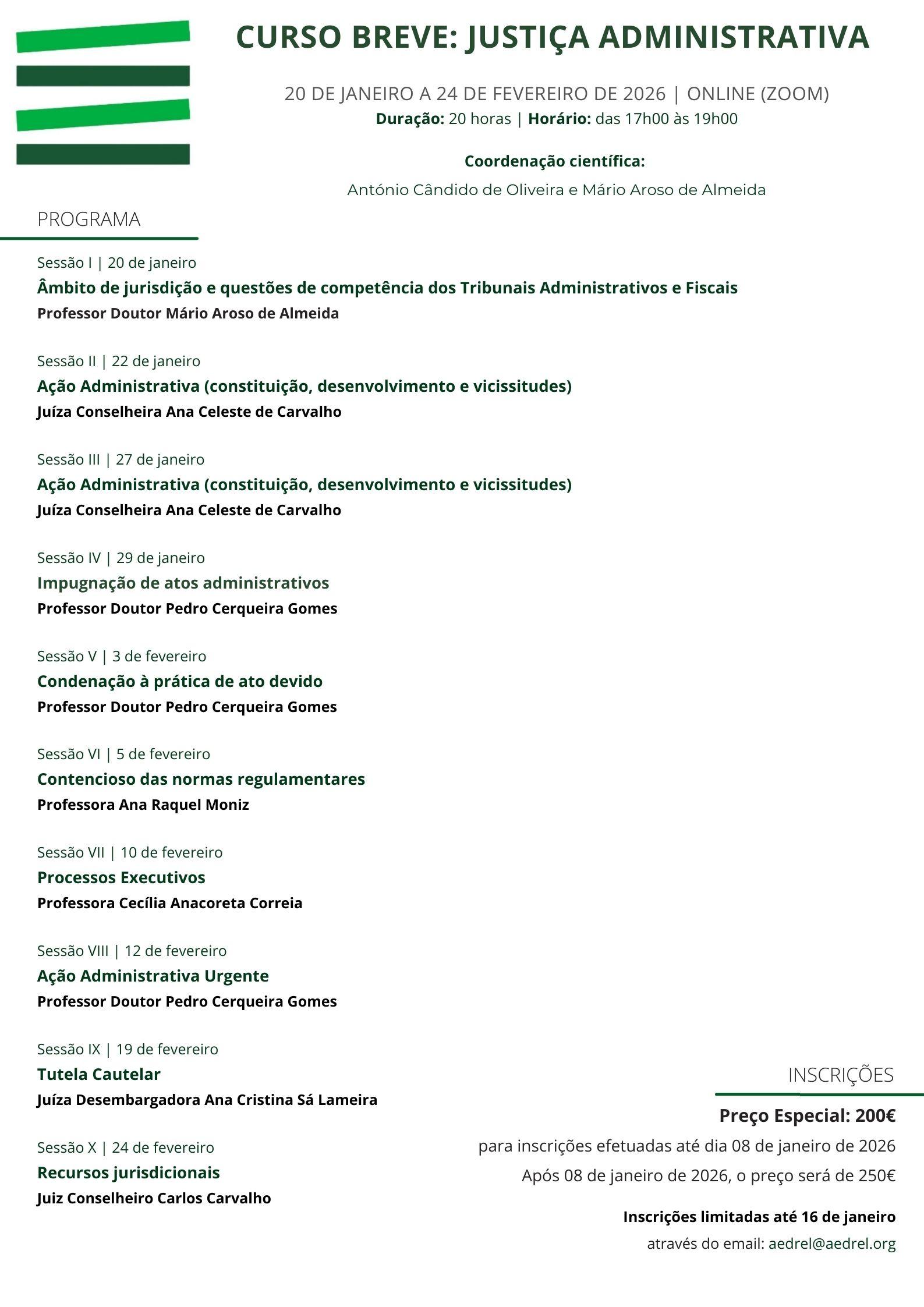 Inscrições limitadas: até ao dia 16 de janeiro de 2026, através do email aedrel@aedrel.org.