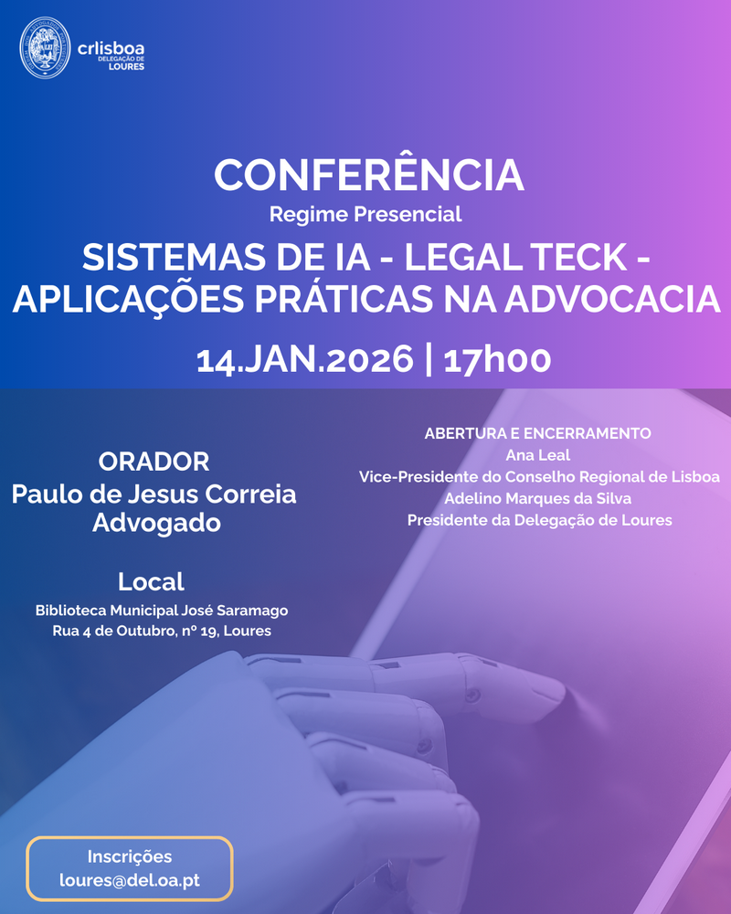 Advogados e Advogados Estagiários: Entrada gratuita sujeita a inscrição prévia
