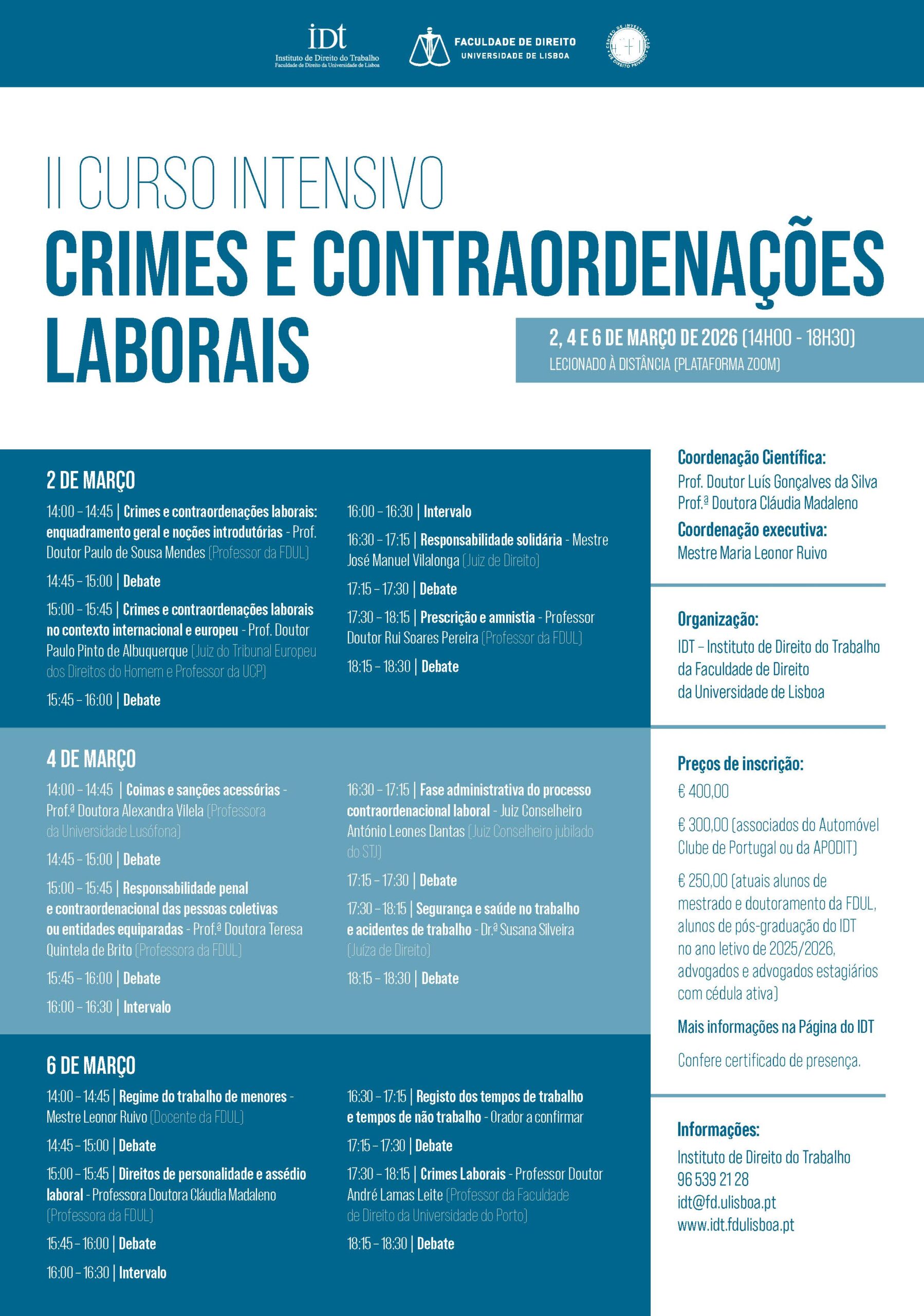 Para qualquer esclarecimento, pode contactar-se o Instituto de Direito do Trabalho (idt@fd.ulisboa.pt) / www.idt.fdulisboa.pt / 965 392 128.