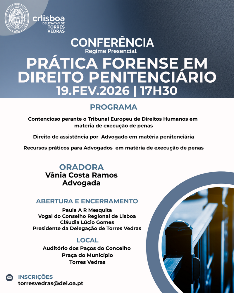 Advogados e Advogados Estagiários : Entrada gratuita sujeita a inscrição prévia
